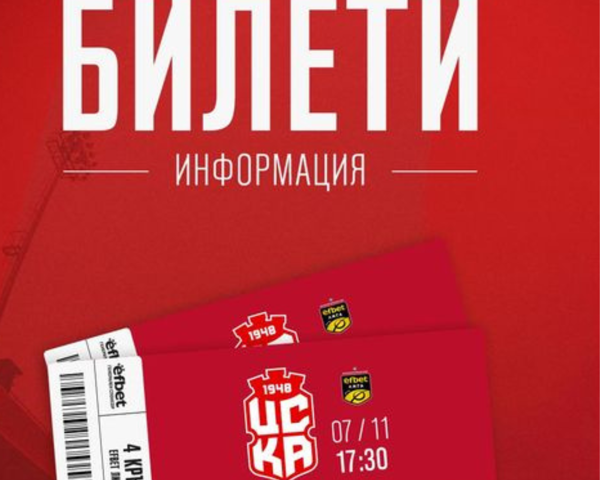 От ЦСКА 1948 пуснаха билетите за домакинството на ЦСКА от отложения 4-ти кръг на ефбет лига. Двата тима се изправят един срещу друг в четвъртък, 7 ноември, на стадион „Витоша“ в Бистрица. Гостуващата агитка ще получи 300 билета за този двубой.