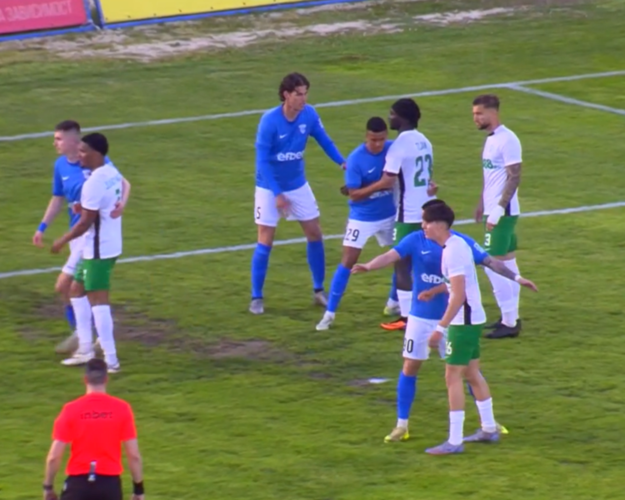 Още в 4-ата минута „соколите“ останаха с човек по-малко, след като Борис Иванов бе изгонен за грубо нарушение срещу Франсиско Варела след намеса на ВАР.